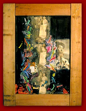 Untitled Collage, paint, crayon on wood 47" x 36"