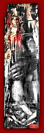 Homage to Man Ray Collage, paint, crayon and encaustic on wood 42" x 12"